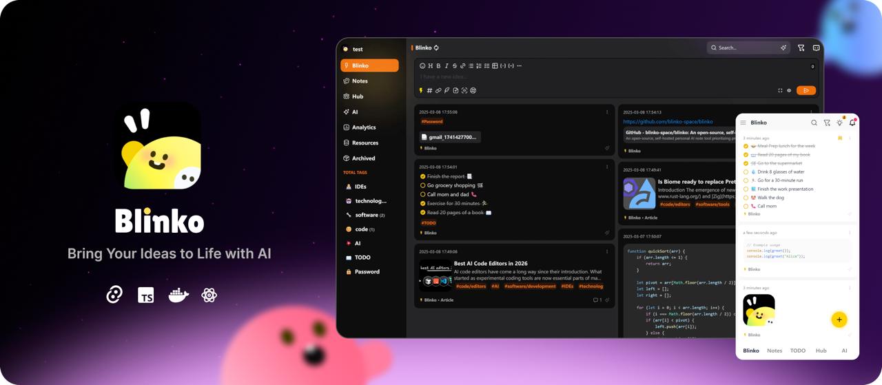 Blinko - (★ 9k at GitHub) is an AI-powered card note-taking project. Designed for individuals who want to quickly capture and organize their fleeting thoughts. Blinko allows users to seamlessly jot down ideas the moment they strike, ensuring that no spark of creativity is lost.